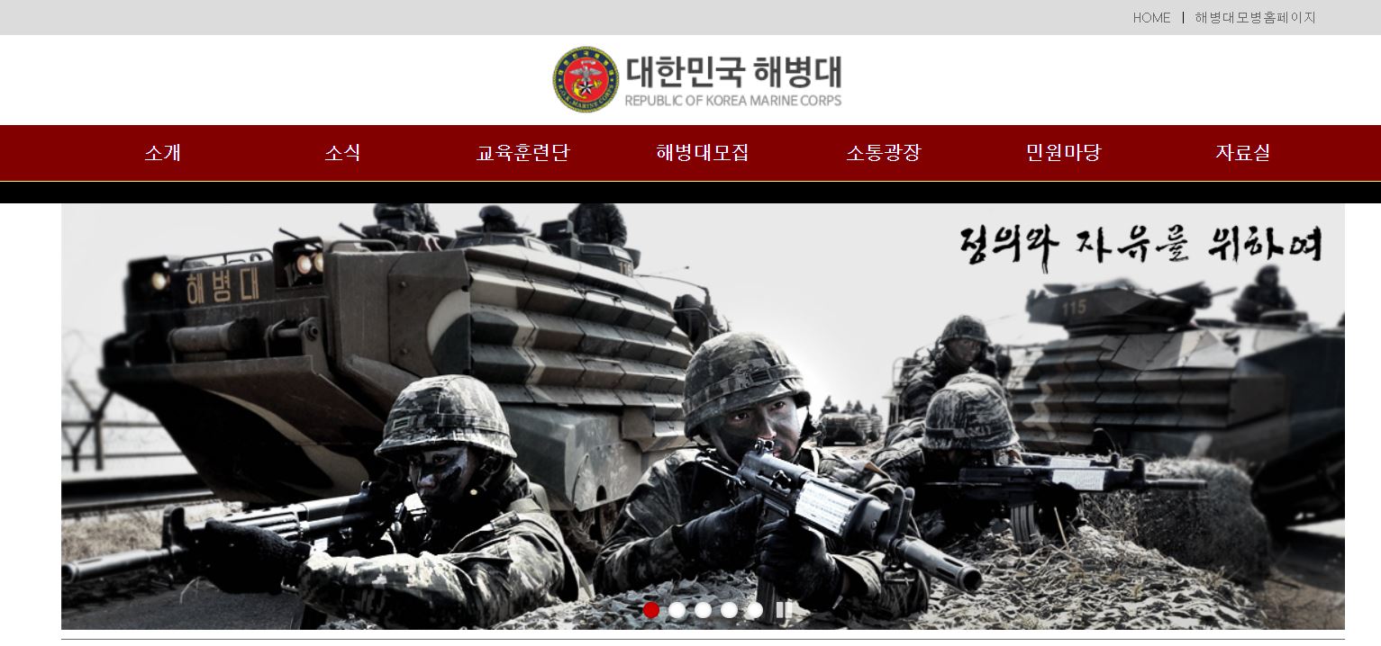 해병대 홈페이지 첫화면 즉 메인 페이지입니다.