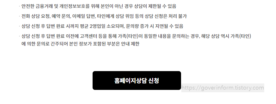 고객지원>홈페이지 상담>홈페이지상담 신청 순으로 접속하면 된다.