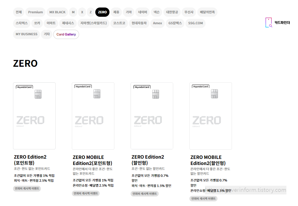 현대카드 홈페이지에 접속하는 방법은 포털 검색창에 "현대카드"를 입력하고 나오는 주소를 통해 접속해도 되고 아래 링크를 이용해도 된다.