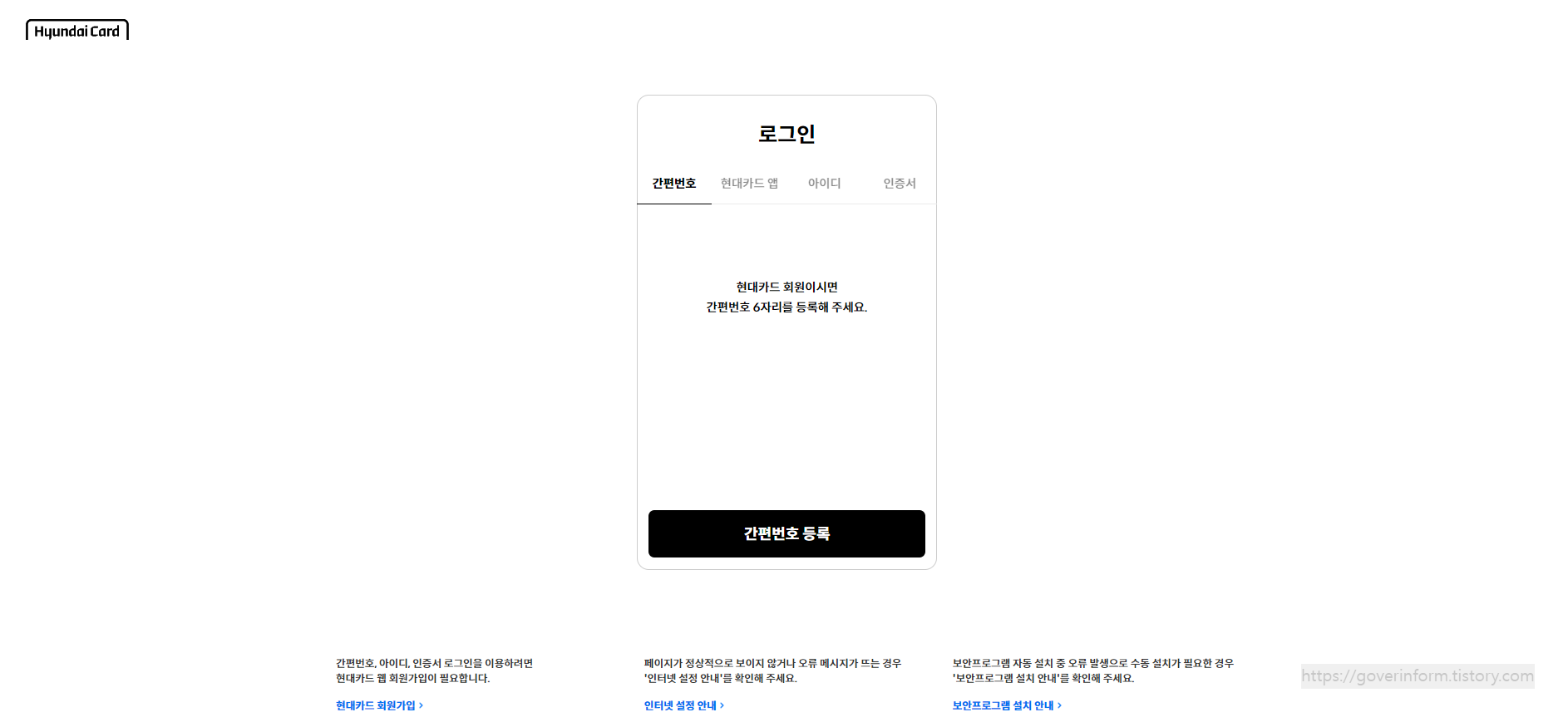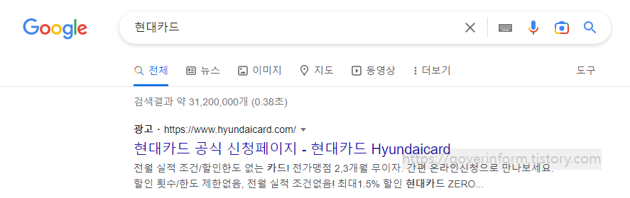 현대카드 홈페이지에 접속하는 방법은 포털 검색창에 "현대카드"를 입력하고 나오는 주소를 통해 접속해도 되고 아래 링크를 이용해도 된다.