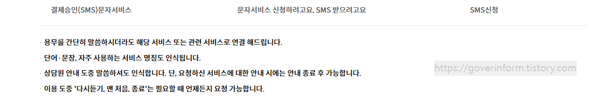 ARS 이용시 말로하는 ARS를 이용하는경우 편하게 키워드를 말로 하여 원하는 메뉴로 이동할수 있다. 간단히 말해도 해당 서비스로 즉시 연결된다. 아래 예시 외에 자주 사용하는 단어나 문장으로 해도된다.