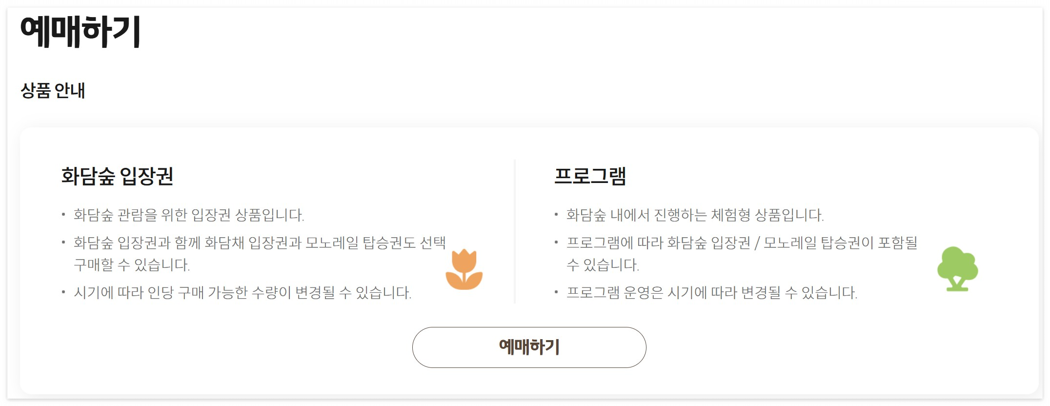 예매방법: 로그인 → 입장권 선택 → 인원 및 시간대 선택 → 결제