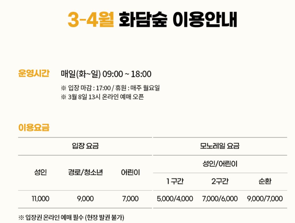 자세한 내용은 아래 화담숲 홈페이지 바로가기를 참고하시기 바랍니다.
