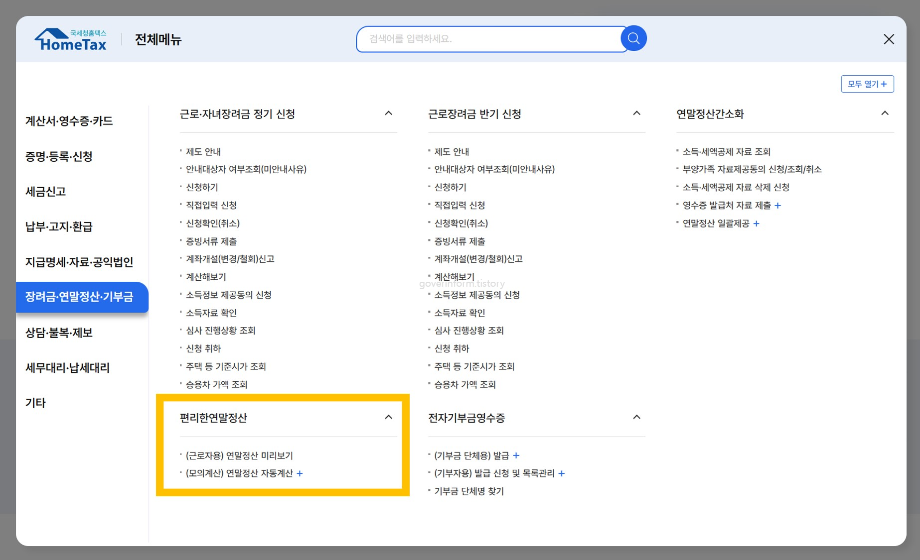2025 연말정산 미리 보기 서비스 이용 방법 안내