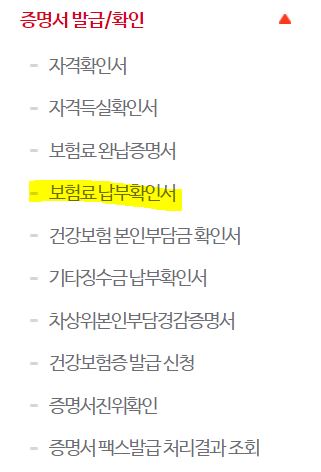 이곳에서 보험료 납부확인서를 발급받을 수 있습니다.