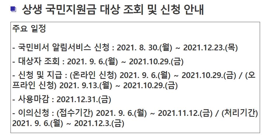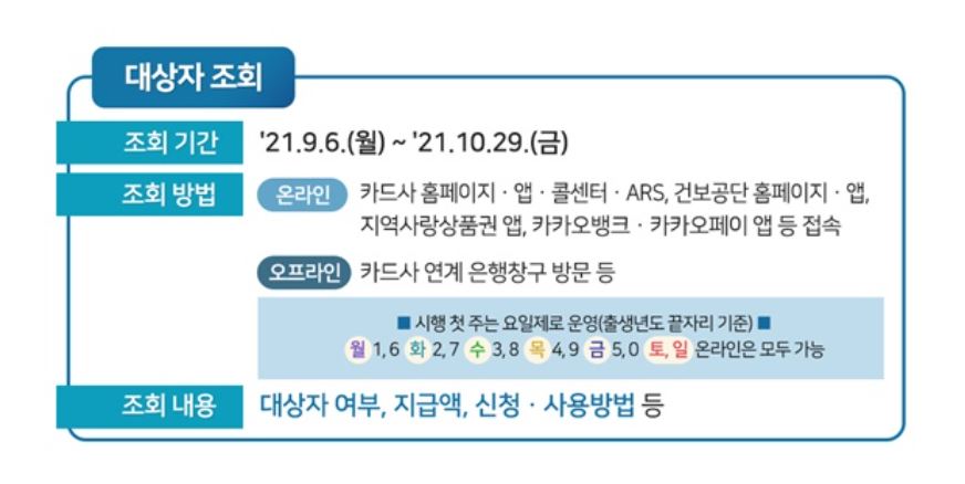 조회방법은 온라인 오프라인이 있으며 생년월일과 이름 입력시 대상자 여부 지급액을 알려줍니다.