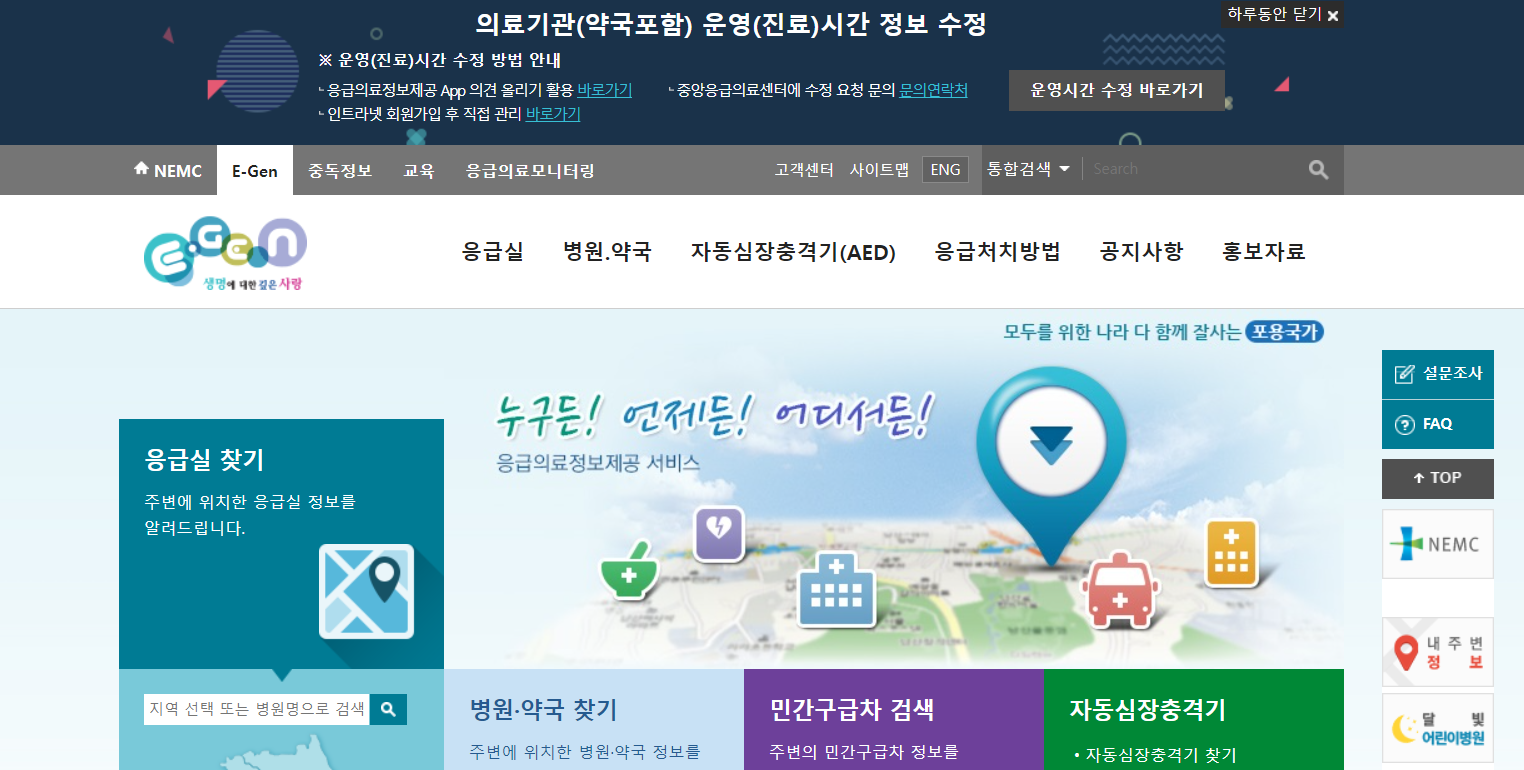 응급의료포털은 2000년에 설립되었으며 언제든지 국민이 필요한 응급서비스를 받을 수 있게 지원하는데 최선을 다한다고 합니다.