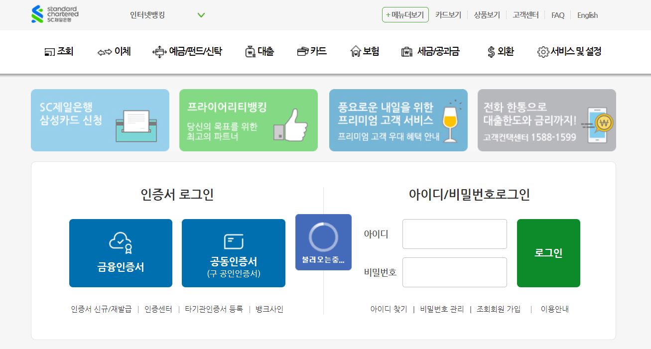 SC제일은행 공인인증센터 인터넷뱅킹 바로가기