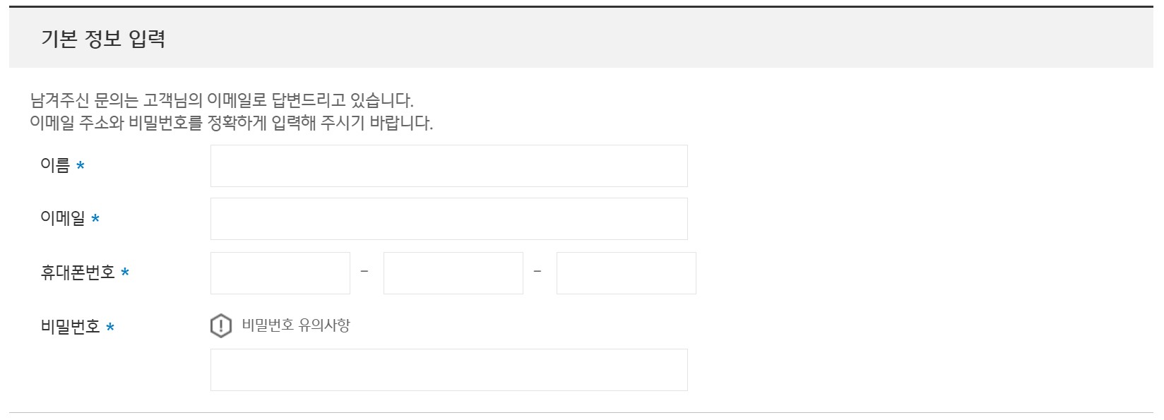 - 문의 내용에 주소, 연락처, e-mail 등의 내용은 지양해 주세요.