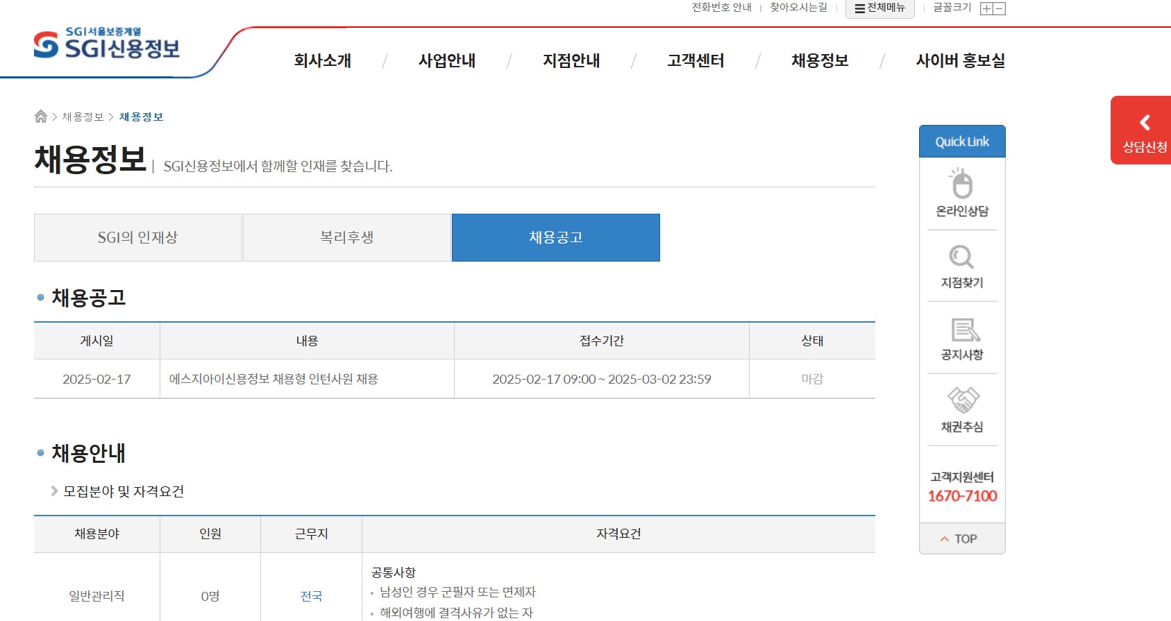 4. SGI 신용정보 채용 공고