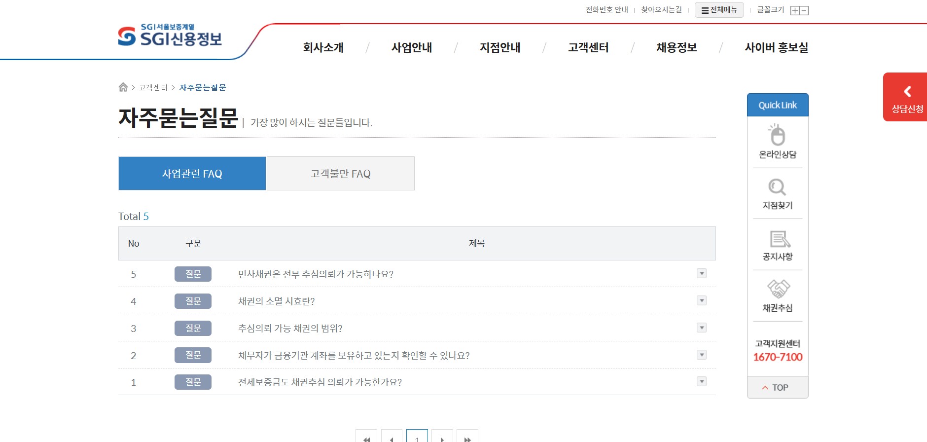 1. SGI 신용정보 고객센터 전화번호