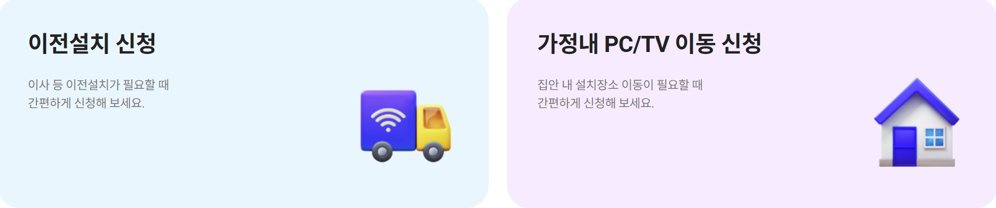 인터넷 및 iptv 설치/철거: 이사할 때 인터넷과 iptv의 이전 설치나 철거가 필요한 경우 고객센터를 통해 신청할 수 있습니다.