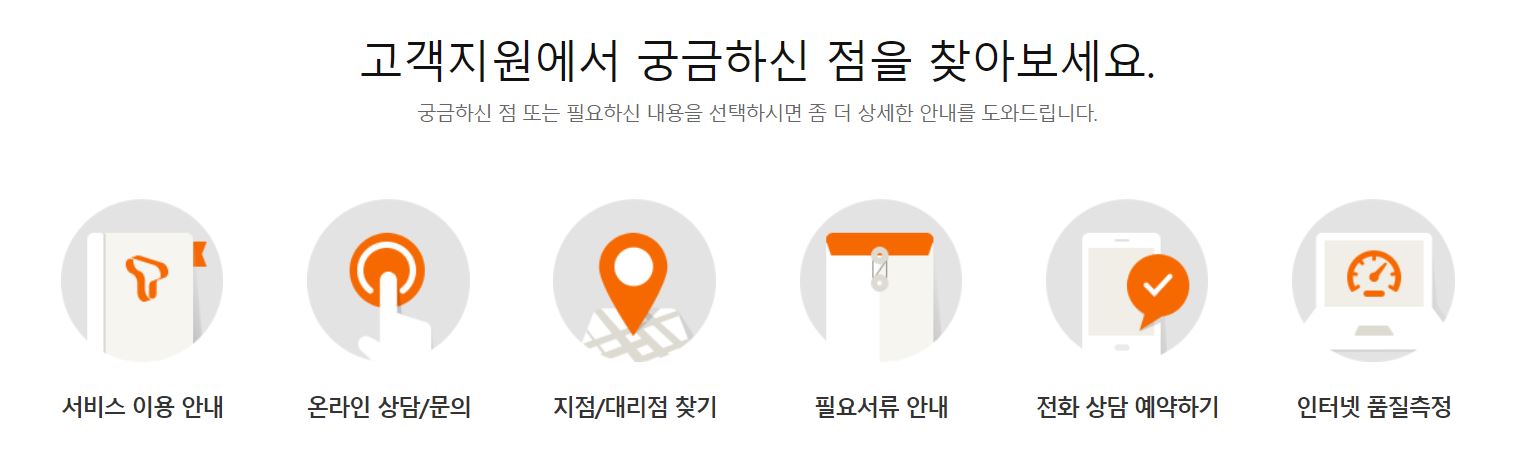 홈페이지에 접속한 다음 고객지원 탭에 가면 온라인 상담 그리고 전화상담예약이 있습니다.