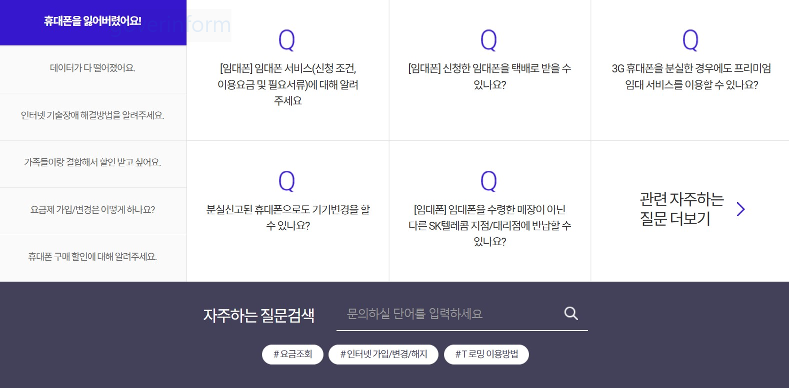 전화 상담이 불편할 경우 sk텔레콤은 다양한 온라인 고객지원 서비스도 제공하고 있습니다.