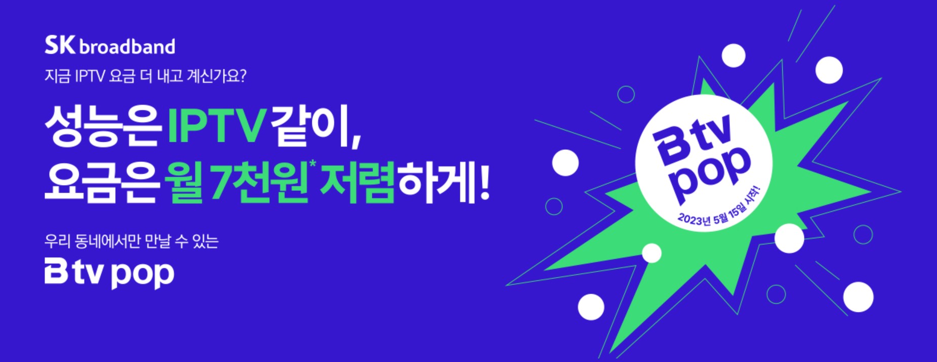 SK브로드밴드는 우리나라 통신사이며 SK텔레콤이 제공하는 브로드밴드 인터넷 서비스입니다. SK텔레콤은 우리나라에서 가장 큰 이동통신사 중 하나이며 이동통신 외에도 인터넷이나 IPTV 등 다양한 통신 서비스를 제공합니다. SK브로드밴드는 고속인터넷, 안정성, 다양한 요금제 등으로 한국 내 가정이나 기업에서 널리 이용되고 있습니다. 또한, 기술 혁신 및 고객 서비스로 우리나라 인터넷 환경을 발전시키고자 합니다. Sk 브로드밴드에서는 TV + Wifi 결합 할인, 월 8천 원대로 부담 없이 TV 시청!, POP100(월 9천 원대) 등 다양한 결합 상품과 할인 상품이 준비되어 있어요.