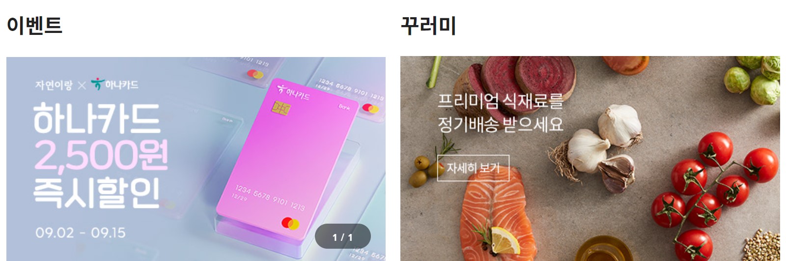 자연이랑 복지몰 SK 직원들을 위한 복지 홈페이지