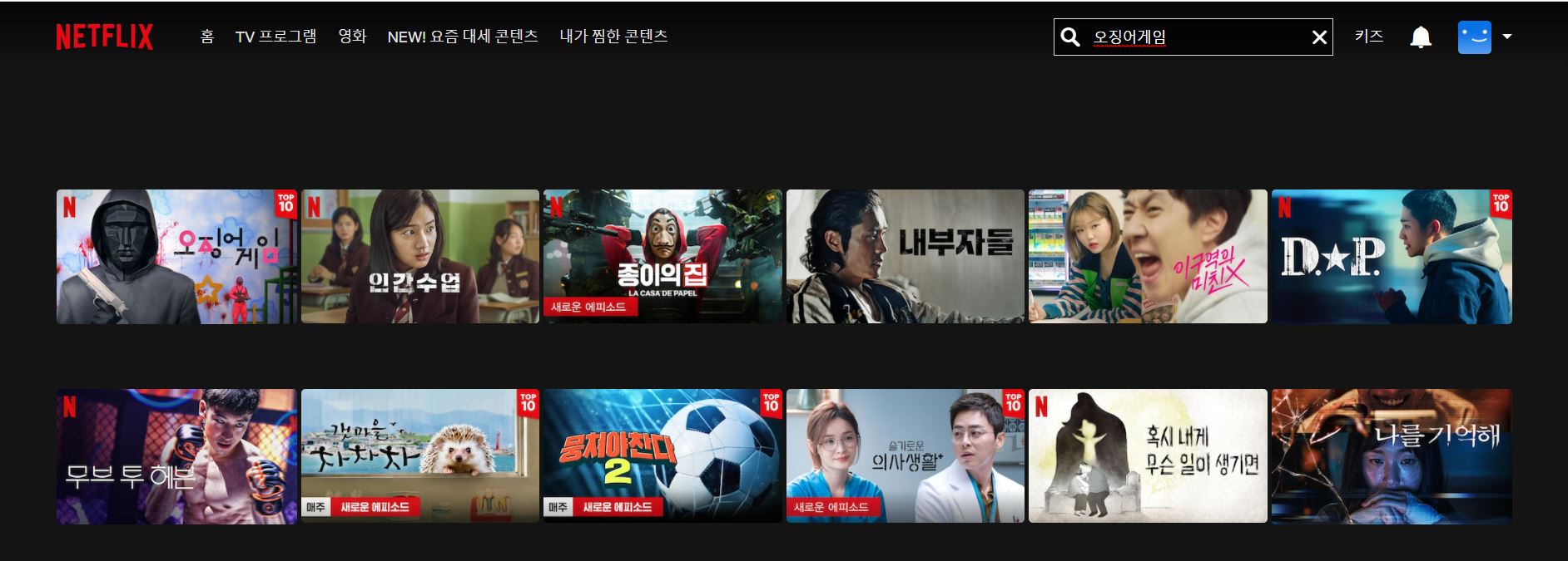 아래는 요즘 인기있는 넷플릭스 영화 오징어게임을 검색해보았습니다.